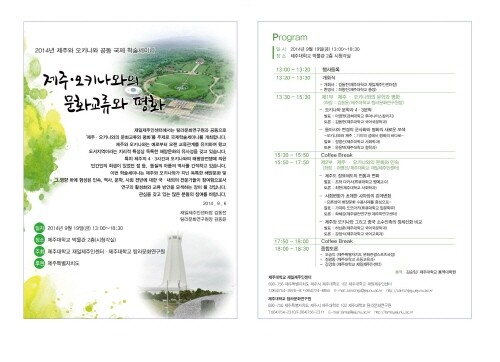 제주도와 오키나와 두 지역의 연구 활성화와 교류 증진을 모색하는 ‘제주-오키나와의 문화교류와 평화’를 위한 국제 학술세미나가 19일 오후 1시 제주대학교 박물관 2층 시청각실에서 열린다.