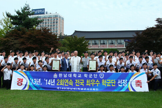 한남대는 대전 육군교육사령부에서 열린 '2014년도 성과분석회의'에서 전국 최우수 학군단으로 선정됐다고 15일 밝혔다. 한남대 학군단은 지난 2010년 종합우수를 시작으로 2011년 최우수, 2012년 종합우수, 2013년 최우수에 선정됐다.