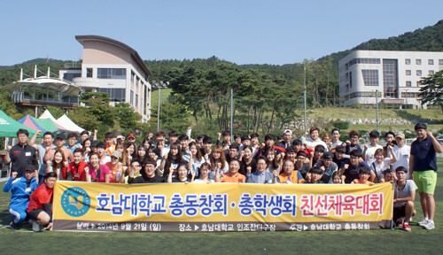 호남대학교 총동창회(회장 정민호)는 21일 광산캠퍼스 인조잔디구장에서 총동창회와 총학생회간 친선체육대회를 가졌다.