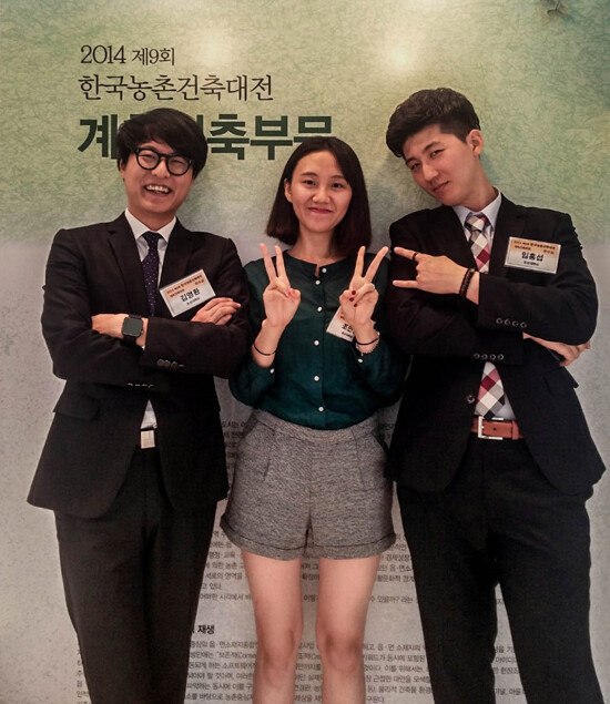 조선대 건축학부 김영환, 임홍섭, 조연경 씨는 농림축산식품부가 주최한 '2014년 한국농총건축대전'에서 계획건축부문 우수상을 수상했다. 시상식은 지난 9월 29일 서울 래미안갤러리 아트홀에서 열렸다.