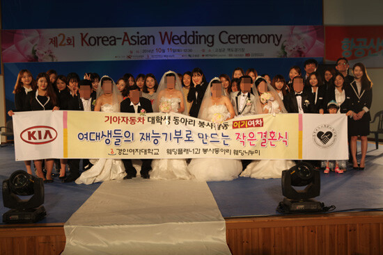 한편 경인여대와 (사)아시아교류협회는 지난해에 이어 결혼 이주 여성들의 안정적인 정착을 돕고 지역사회 발전에 기여하기 위해 합동결혼식을 기획했다. 이번 합동결혼식은 고성군, 대한적십자사, 기아자동차, 한국남동발전주식회사가 후원했다.