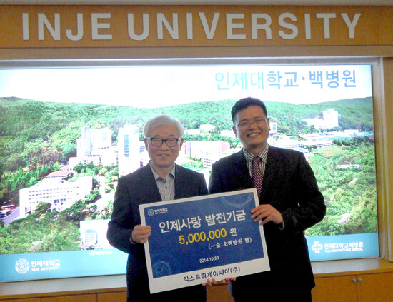 익스트림제이지에는 향후 매 학기마다 인제대에 발전기금을 기부할 예정이다.
