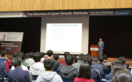이날 특강은 이스라엘 테크니온공대 댄 셰흐트만 교수가 '준결정의 발견(The Discovery of Quasi-Periodic Materials)'이라는 주제로 강연을 진행했다. 댄 교수는 제3의 고체라 불리는 준결정을 발견해 노벨화학상을 수상한 바 있다.