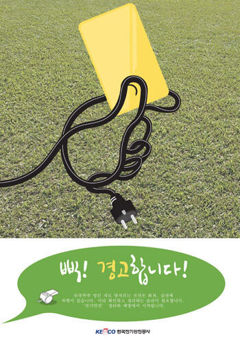 수상작은 무관심한 방치로 복잡하게 엉켜버린 전선들 사이에 그것을 경고하는 옐로우 카드를 끼워 넣은 이미지다. 엉켜버린 전선으로 인한 감전이나 화재의 위험을 막기 위해 가장 필요한 것은 예방이라는 것을 공모전 키워드 중 하나인 노랑에 연관시켰다.