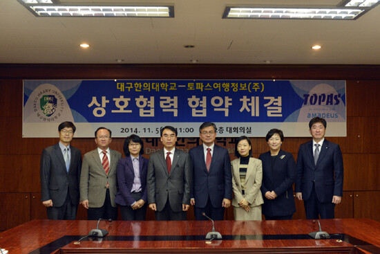대구한의대는 5일 대구한의대 삼성캠퍼스 본관 대회의실에서 토파스여행정보(주)와 산학협력 협약을 체결했다.