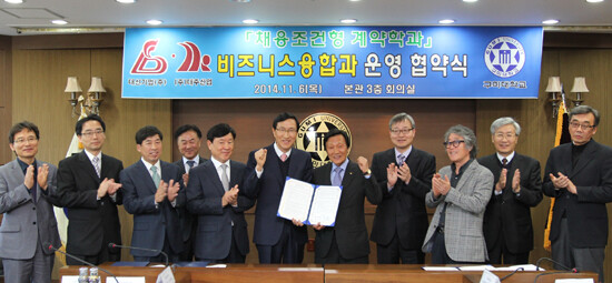 이번에 신설되는 '비지니스융합과'의 모집정원은 20명으로 올해부터 신입생을 선발한다. 내년에 입학하는 신입생들은 1년간 공통수업을 받는다. 2학년 때 회계, 마케팅, 바리스타 등 세부 전공으로 나눠진다. 협약업체에서는 졸업요건을 충족한 학생 중 80% 이상을 의무적으로 채용한다.
