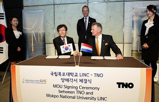 목포대(총장 최일) LINC사업단은 4일 서울 플라자호텔 다이아몬드홀에서 빌럼 알렉산더르 네덜란드 국왕과 함께 방문한 경제사절단 일행 중 독립연구기관인 TNO(네덜란드 응용과학연구원)와 해상풍력분야 기술개발(R&D) 및 전문 인력 양성을 위한 국제협력 업무협약을 체결했다.
