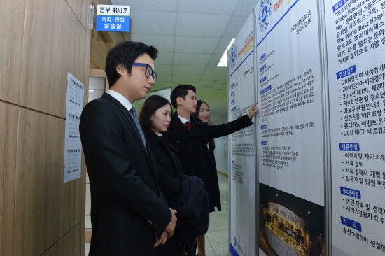 이날 행사는 백석대 주관 행사였지만 다른 대학의 관광 관련 학과 학생들도 참여해 구직활동에 나설 수 있었다. 뿐만 아니라 수능시험을 마치고 관광 관련 학과에 진학을 꿈꾸고 있는 고등학교 졸업 예정자 등 누구나 행사에 참여할 수 있었다. 또한 행사가 진행되는 4층 로비에서는 이번 엑스포에 참가하는 기업체들에 대한 지원 자격과 채용 형태, 채용 방식 등의 정보가 제공됐다.
