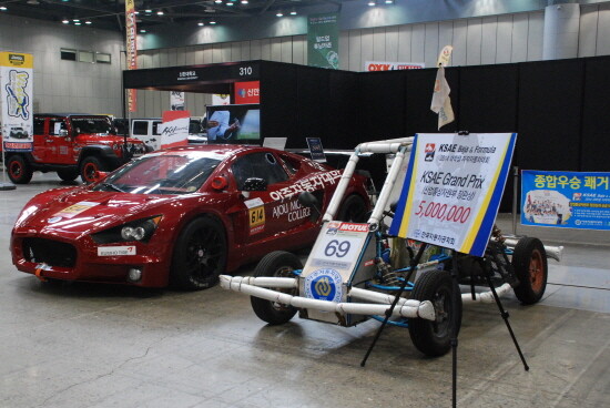 아주자동차대학은 지난 8월 한국자동차공학회가 주최한 ‘2014 대학생 자작자동차대회’에서 그랑프리 수상팀의 자격으로 참가하여 당시 우승한 자작차를 전시하고 자작자동차 발표대회 및 특별세미나에서 자동차학과 교수님과 연구기관, 산업체 임직원들 앞에서 발표했다.