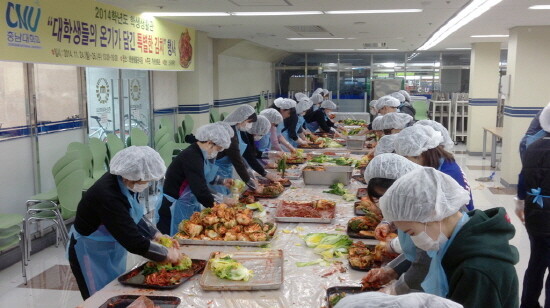 충남대학교(총장 정상철) 학생생활관 자치위원회가 24일부터 27일까지 ‘대학생들의 온기가 담긴 특별한 김장 담그기’ 행사를 열고 700포기의 김장을 효성의 집 등 사회복지기관에 전달했다. 이날 김장 담그기에는 사생자치임원 10명을 비롯해 외국인 유학생 10명, 자원봉사로 참여한 학생과 직원 등 110여명이 참여했다.