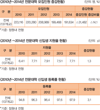 4년제 대학에서 전문대학으로 'U턴' 입학 증가