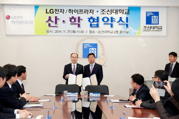 조선대는 27일 본관 소회의실에서 강계웅 LG전자 하이프라자 대표이사와 산학협력 협약을 체결했다.