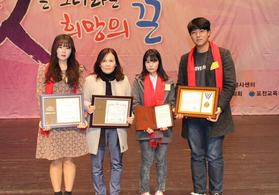 경복대 다솜누리봉사단에서 활동한 학생들이 3일 포천반월아트홀 대강당에서 개최된 '2014 포천시 자원봉사 대축제'에서 그동안 봉사활동에 참여한 공이 인정돼 표창을 받았다.
