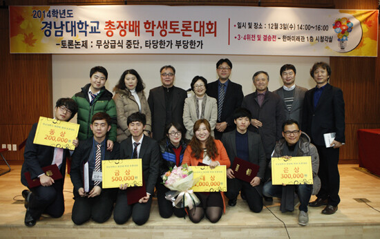 토론대회는 학생들에게 합리적인 토론 능력 배양 및 토론문화를 활성화시키고 '스펙 쌓기'의 기회를 제공하고자 매년 개최하고 있다. 이번 대회에는 모두 50개팀 100여 명이 참가해 퍼블릭 포럼 디베이트 변형 방식으로 예선을 거쳤다. 토론대회 당일 본선에 진출한 4개 팀이 '경상남도의 무상급식 지원 중단, 타당한가 부당한가?'를 주제로 선의의 경쟁을 펼쳤다.