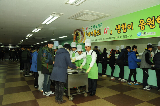 금오공대 김영식 총장 및 교수·직원들은 지난 9일 금오공대 학생식당에서 1200명 분의 국수를 준비해 학생들을 응원했다.