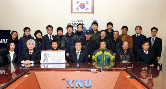 강원대 평생학습중심대학 학위과정 계약학과인 농생명산업학과, 시설농업학과의 교수진과 학생들은 12일 신승호 강원대 총장을 찾아 발전기금 7000만 원을 약정했다. 이들은 "학업의 길을 열어 주신 총장님과 교수님들께 감사 드리고 보다 많은 현직 농업인들이 학업의 꿈을 이루길 바라는 마음에 작은 정성이지만 뜻을 모았다"고 밝혔다.