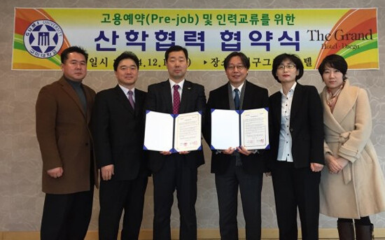 이번 협약은 구미대가 추진하고 있는 고용예약형 Pre-Job프로그램의 일환으로 진행됐다. 양 기관은 소정의 절차를 거쳐 선발된 학생들을 대상으로 산업체가 요구하는 맞춤식 교육을 실시한 후 일정인원 이상 채용할 것을 약속했다.