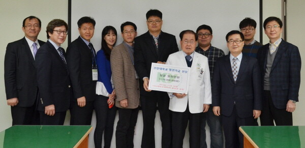 건양대학교(총장 김희수) 나노바이오화학과 졸업생 최종수 동문 등 6명이 15일 대전캠퍼스에서 김희수 총장을 만나 졸업생들이 모은 1000만 원을 대학발전기금으로 기부했다.