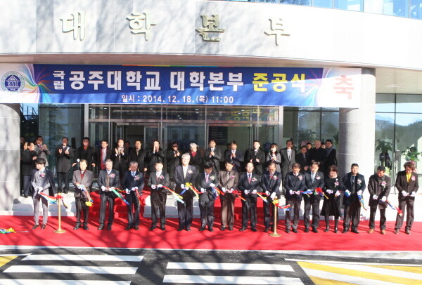 공주대학교(총장 직무대리 김창호)는 18일 공주캠퍼스 대학본부 신축건물 앞에서 김창호 총장 직무대리를 비롯한 200여명이 참석한 가운데 대학본부 이전 신축 준공식 행사를 가졌다.