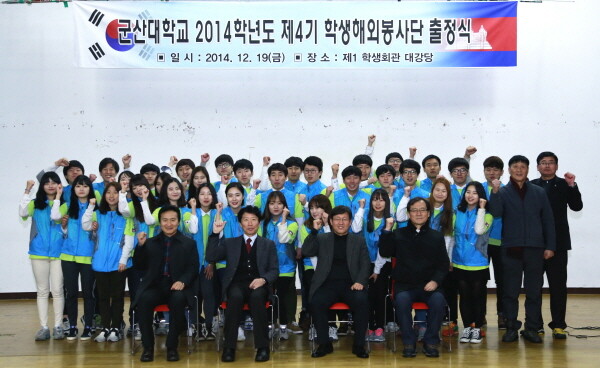군산대학교(총장 나의균)는 19일 군산대 제 1학생회관 대강당에서 ‘2014학년도 학생해외봉사단 출정식’을 가졌다.