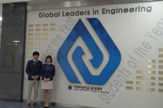 가장 먼저 홍보대사들이 기자를 데리고 간 곳은 원천관에 있는 ‘융합전자특성화사업단’이다. 김정민 씨는 “우리 대학의 전자공학과가 주축이 돼 운영되고 있는 사업단”이라고 소개했다. 미래의 전자공학은 시스템 지향적 사고능력을 갖춘 엔지니어를 요구한다. 이 같은 사실을 일찍부터 인지했던 아주대 전자공학과는 오성근 단장을 중심으로 기존의 전자소자, 전파통신, 컴퓨터, 제어, 멀티미디어로 이루어진 기술군 위주의 교육과정을 반도체IT, 모바일IT, 자동차IT와 같은 산업수요 지향적인 융복합 교육과정으로 개편을 시도했다. 김 씨는 “미래의 전자공학은 어떨 것 같으세요? 단순히 1차원적인 전자공학을 넘어서 시스템 지향적 사고능력을 갖춘 엔지니어를 요구하는 시대가 다가오겠지요”라고 강조했다.