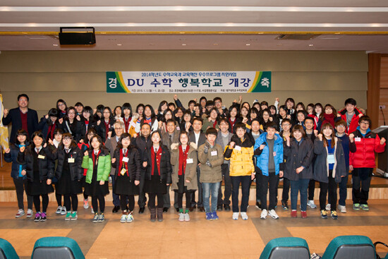 이 날 행사에는 대구대 임석회 사범대학 학장 등 대학 관계자 및 학생 100여 명이 참석했다. 'DU(Daegu University) 행복학교'는 사교육비 경감과 지역 교육복지 향상을 위해 개설됐다. 대구대와 교육실습 협약을 체결한 학교와 협력해 방학 기간 중 무료로 교육과정을 운영한다.