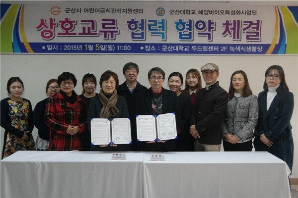 군산대학교(총장 나의균) 해양바이오특성화사업단(단장 노정래)과 군산시어린이급식관리지원센터(소장 장혜순)가 5일 군산대 두드림센터에서 상호교류 협력을 위한 협약을 체결했다.