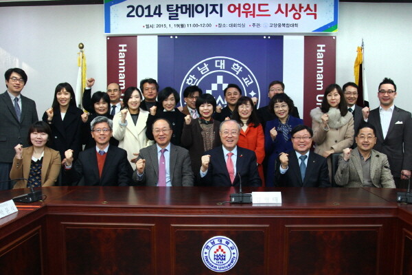 한남대학교(총장 김형태) 교양융복합대학은 19일 학생들의 2014학년도 교양과목 수업만족도 평가를 기준으로 상위 2%에 오른 25명의 강사를 교양스타강사로 선정, ‘탈메이지 어워드’를 시상했다.