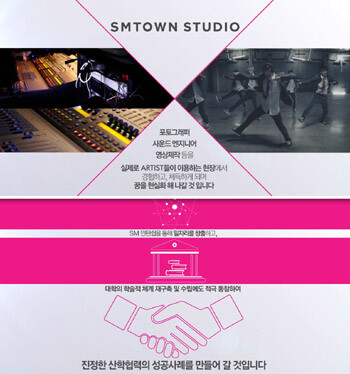 이같은 산학협력 체결 내용은 지난 13일 강남구 삼성동에서 SM엔터테인먼트 이수만 프로듀서를 비롯해 한덕수 한국무역협회 회장, 윤종록 미래창조과학부 차관, 김희범 문화체육관광부 차관, 남경필 경기도 지사 등 총 500여 명의 귀빈들이 참석해 진행된 ‘SM타운 코엑스아티움’ 오픈식에서 공식 발표됐다.