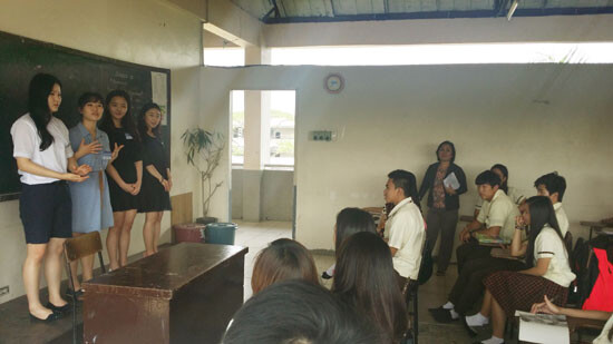 사범대학 영어교육과 4학년(정수빈, 우경미), 3학년(석다혜, 오경실) 학생과 지리교육과 3학년 문석환 씨 등 5명은 지난 19일부터 필리핀 세부에 있는 사우스웨스턴대학교(Southwestern University) 부설 고등학교에서 학교현장실습을 하고 있다.