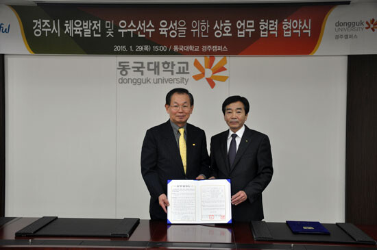 이번 협약은 동국대 경주캠퍼스와 경주시체육회가 상호 협력 네트워크를 구축하고 양 기관의 호혜적 발전과 경주시 체육 발전을 위해 마련됐다. 양 기관은 앞으로 ▲우수선수 체육 특기자 입학 ▲지도자 및 훈련장소 협조 ▲장학금 및 훈련비 지급 등을 지원한다.