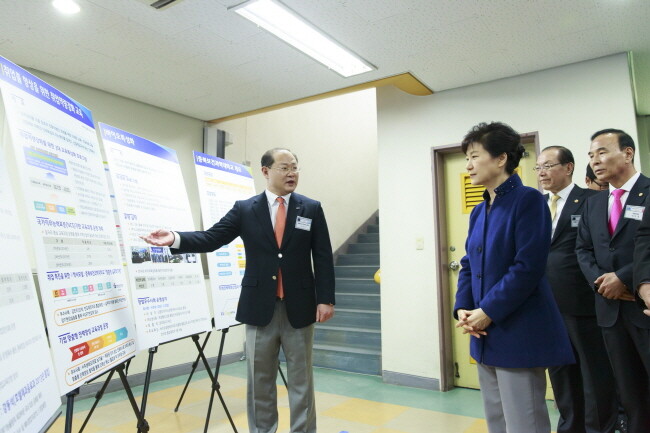 박근혜 대통령이 4일 충북보건과학대학교(총장 박용석)를 찾았다.