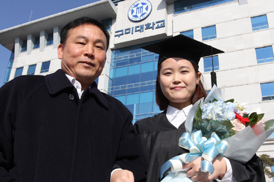 이날 구미대 작업치료과 정예림 씨는 어려운 환경과 오랜 외로움을 이겨내고 당당히 대학 수석졸업생과 재단이사장상 수상이라는 영예를 안았다.
