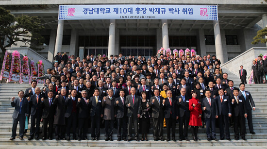 이날 취임식에는 강창희 전 국회의장, 이윤석 국회의원, 박종훈 경남도교육감, 안상수 창원시장, 송민순 전 외교통상부 장관, 권순기 경상대 총장 등 400여 명이 참석했다.