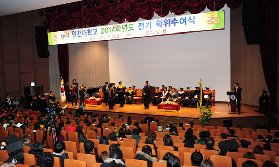 한편 이날 졸업식에서는 중국(2), 방글라데시(1), 인도(1)에서 유학 온 4명의 외국인 대학원생이 박사학위를 받았다. 또 평생교육원 학점은행 과정을 통해 수학한 18명의 학생도 학사학위를 받아 인천대는 대학 설립 이후 총 5만4000여 명의 학위수여자를 배출하게 됐다.