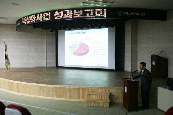 충북보건과학대학교(총장 박용석)가 24일 대학 합동강의실에서 특성화 전문대학 육성사업 1차년도 사업성과보고회를 가졌다.