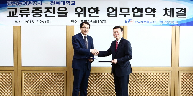 양 기관은 26일 광주·전남 혁신도시에 위치한 한국농어촌공사 신사옥에서 이남호 전북대 총장과 이상무 한국농어촌공사 사장 등 양 기관 주요 관계자들이 참석한 가운데 공식 협약식을 가졌다.