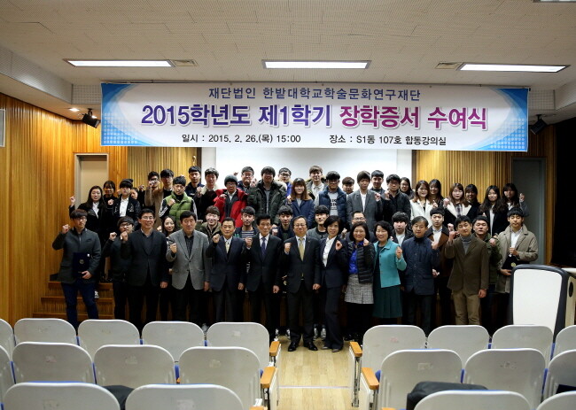 (재)한밭대학교학술문화연구재단(이사장 송하영)이 26일 한밭대에서 ‘2015학년도 제1학기 장학증서 수여식’을 개최했다.