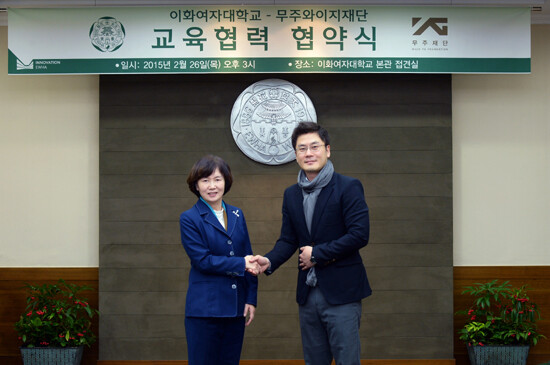 이화여대 최경희 총장과 무주와이지재단 양민석 이사는 26일 이화여대 본관 접견실에서 '위기 청소년들을 위한 음악정서지원 사업' 교육협력을 위한 협약을 체결했다. 무주와이지재단은 양현석 YG엔터테인먼트 프로듀서가 불우 청소년과 어린이를 돕기 위해 지난해 10억 원을 기부해 설립한 비영리재단법인이다.