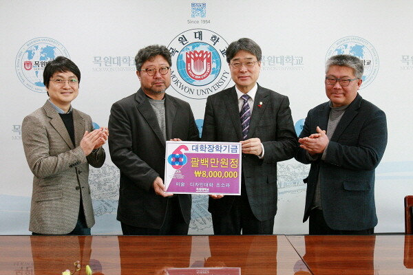 목원대(총장 박노권) 미술대학 조소과 이창수, 박성순, 전범주 교수는 5일 박노권 총장과 보직자들이 모인 가운데 800만원 의 제자사랑 장학금을 전달했다.