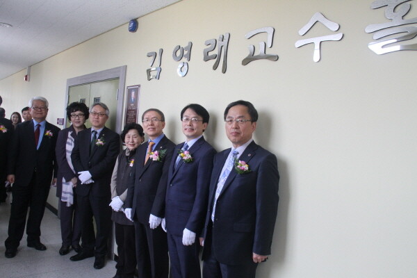 충북대학교(총장 윤여표)가 30일 인문사회관 401호에서 故 김영래 충북대 국제경영학과 교수의 후학 양성과 후배 사랑에 대한 뜻을 기리기 위한 ‘김영래 교수 기념홀 제막식’을 가졌다.