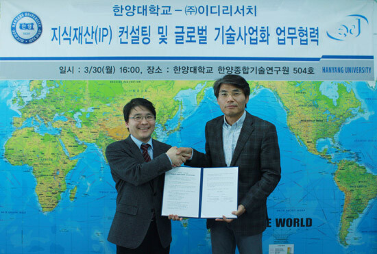 한양대는 지난 30일 비즈니스 아이디어(BI) 사업화 전문기관인 ㈜이디리서치(대표 서주원)와 서울 성동구 한양종합기술연구원에서 지식재산(IP) 컨설팅 및 글로벌 기술사업화 지원을 위한 업무협약을 체결했다.