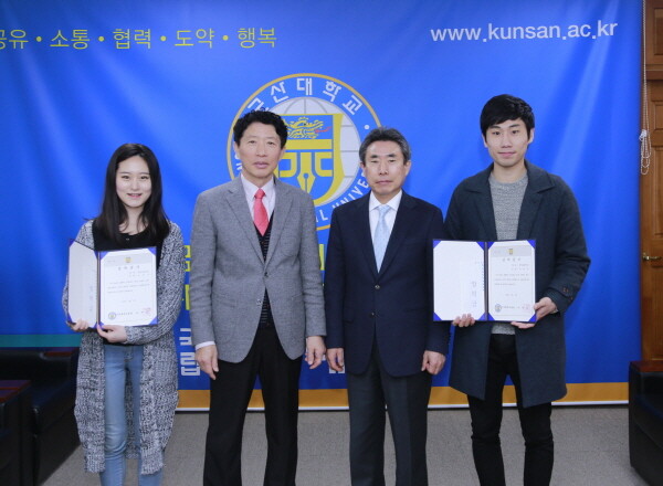 한경후 장학금은 군산대 영어영문학과 동문인 한경후씨(55, 1986년 졸업, 코엠인터내셔널 대표)가 학과 후배들을 위해 매년 400만 원을 출연해 만들어진 장학금이다. 이번 1회 장학금은 외국어능력우수자인 영어영문학과 김진석(3학년), 신미나(4학년) 씨에게 각각 100만원씩 전달됐다.