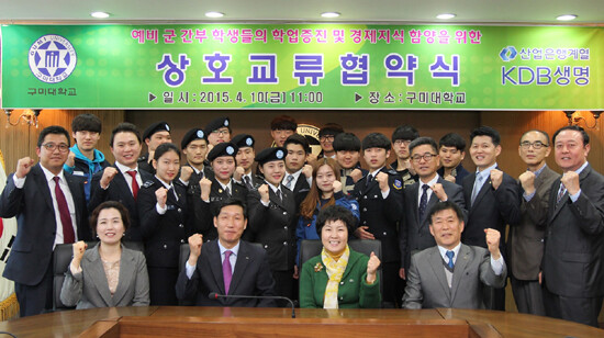 이날 협약으로 KDB생명은 군 간부 후보생들의 안정적인 학업증진을 위해 장학금을 지원하고 올바른 경제지식 함양을 위한 재무특강을 학기당 1회 실시하기로 했다.