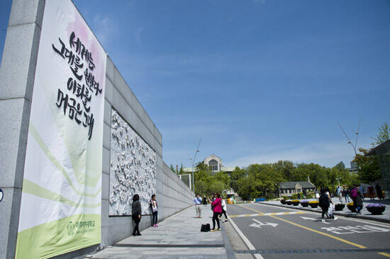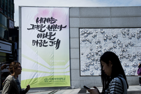 이화여대는 지난 1월 정문 앞에 이화의 브랜드 가치를 높이고 구성원들의 자부심을 높일 수 있는 문안을 담은 ‘이화글판’을 처음 게시한 후 분기별로 교체하고 있다.
