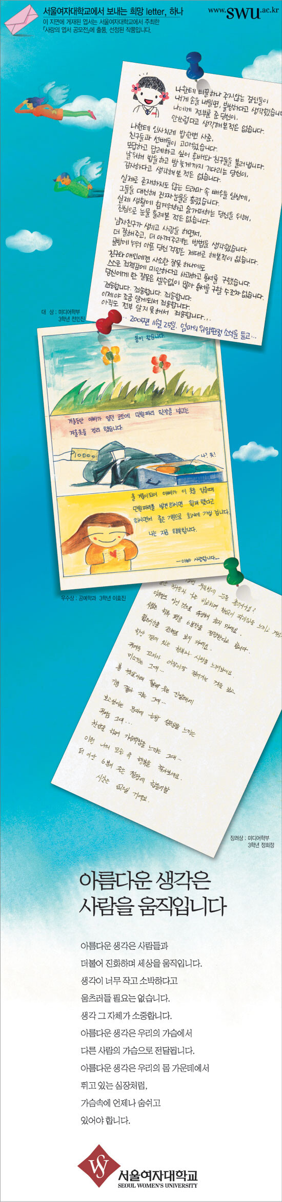 서울여대 관계자는 "5월 가정의 달, 특히 어버이날을 맞아 이 글을 통해 부모님의 헌신적이고 깊은 사랑을 돌아보는 좋은 계기가 됐으면 좋겠다"고 밝혔다.
