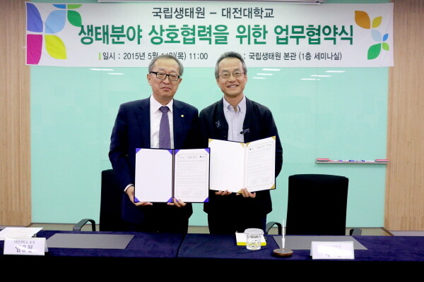 대전대학교(총장 임용철)와 국립생태원(최재천 원장)은 14일 국립생태원 본관에서 양 기관장 및 관계자 등 10여명이 참석한 가운데 “교육과 전시 및 연구 협력 활성화”를 위한 MOU를 체결했다.