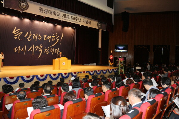 신명국 이사장은 “원광대의 명예는 위기와 갈등을 이겨냈던 내부의 선한 의지와 그 속에서 발현된 강한 에너지를 통해 얻어진 것”이라며 “69년의 역사 동안 그러했듯이 내부의 힘을 하나로 모으고 이 시대가 요구하는 변화의 방향을 정면으로 바라보면서 문제를 해결해 나가자”고 말했다.