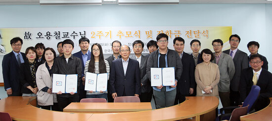 지난 2013년 5월 학생처장직을 맡아 대학 발전과 학생 복지증진에 전념하던 중 작고한 故 오 교수를 기리기 위한 이 장학금은 유가족과 교직원들이 모은 1억3000여만 원의 성금으로 조성한 것이다.