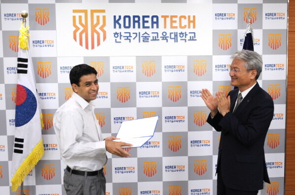 한국기술교육대학교(코리아텍, 총장 김기영)는 27일 네팔의 대규모 지진으로 피해를 입은 대학원생 아트마람 씨에게 대학 구성원들의 성금과 발전기금으로 조성한 장학금 166만 5000원을 전달했다.